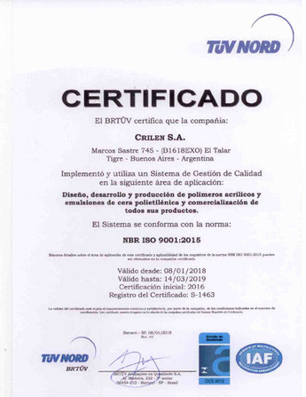 - 1. Crilen. Certificada ISO 9001: 2015 e ISO 14001: 2004 por TÜV NORD.