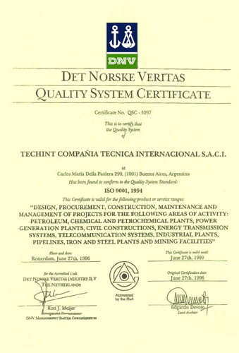 - 1. Techint Compañía Técnica Internacional. Certificada ISO 9001 por DNV.