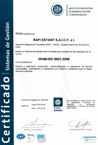 - 1. Rapi-Estant (Muebles). Certificada ISO 9001: 2008 por IRAM. Sistema de Gestión Ambiental según ISO 14001 en implementación.