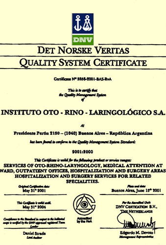 - 1. Instituto Otorrinolaringológico (Fundación Arauz). Certificada ISO 9001, versión 2000 por DNV.
