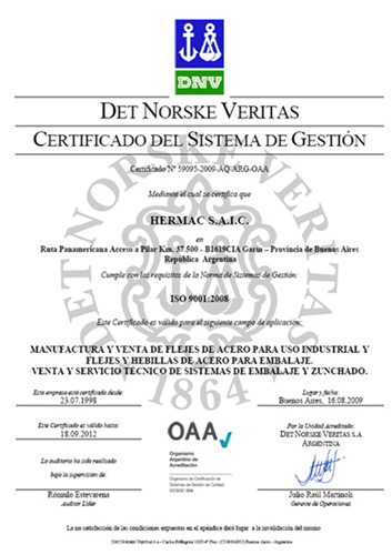 - 1. Hermac. Certificada ISO 9001: 2015 e ISO 14001: 2015 por DNV. Sistema de Gestión de Salud y Seguridad Ocupacional, según norma ISO 45001: 2018 implementado.