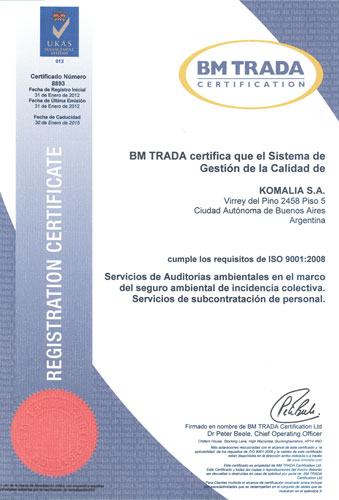 - 1. Komalia (Auditorías Ambientales - Outsourcing). Certificada ISO 9001: 2008 por BM TRADA.